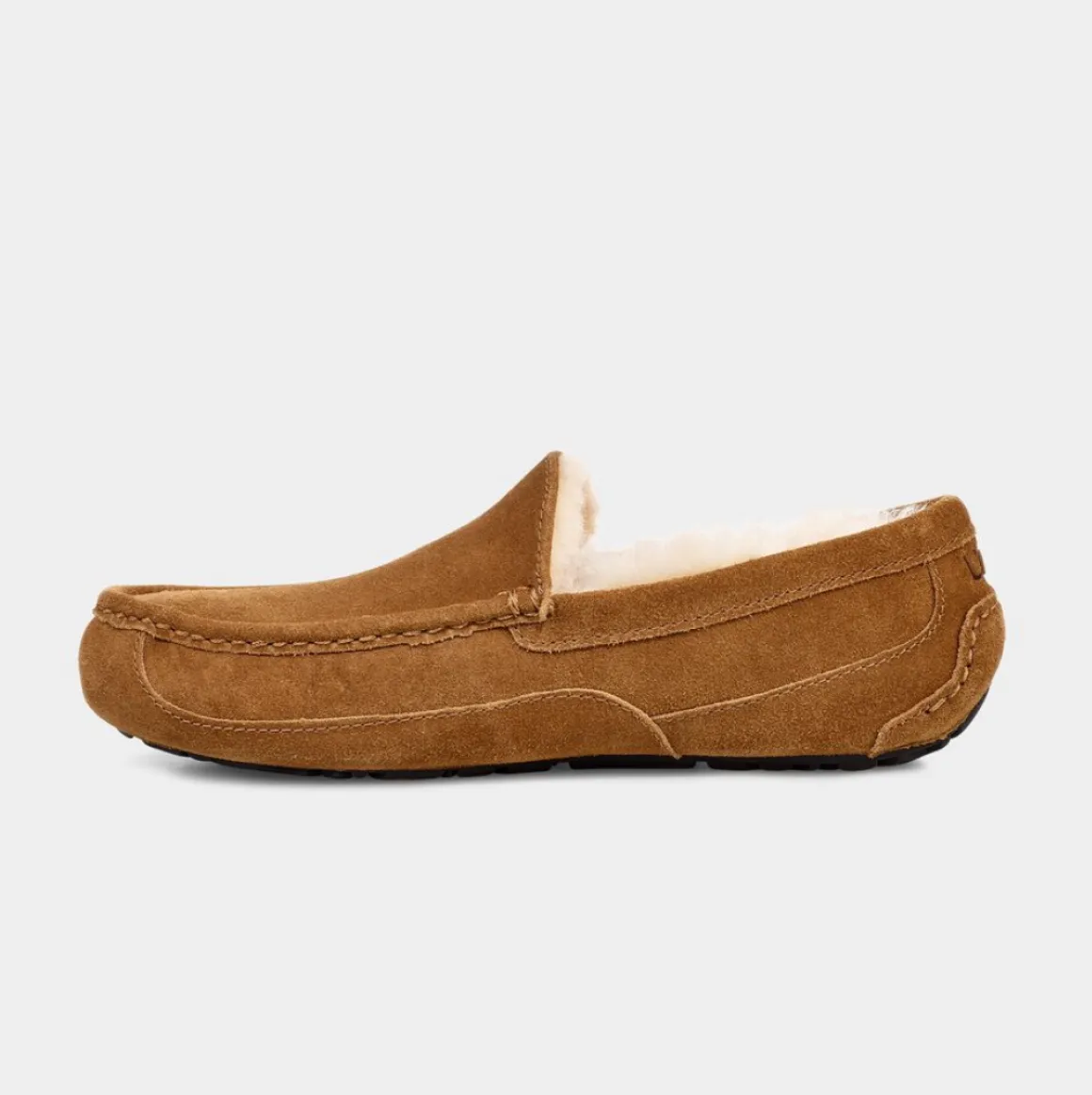 UGG Ascot. Ascot tøffelen har utseende til en loafer og mykheten til tøffelen. Den har en gummisåle som kan gå både innendørs og utendørs, slik at du kan ta den på deg om morgenen hjemme, helgeplaner eller uformelle kontordager.