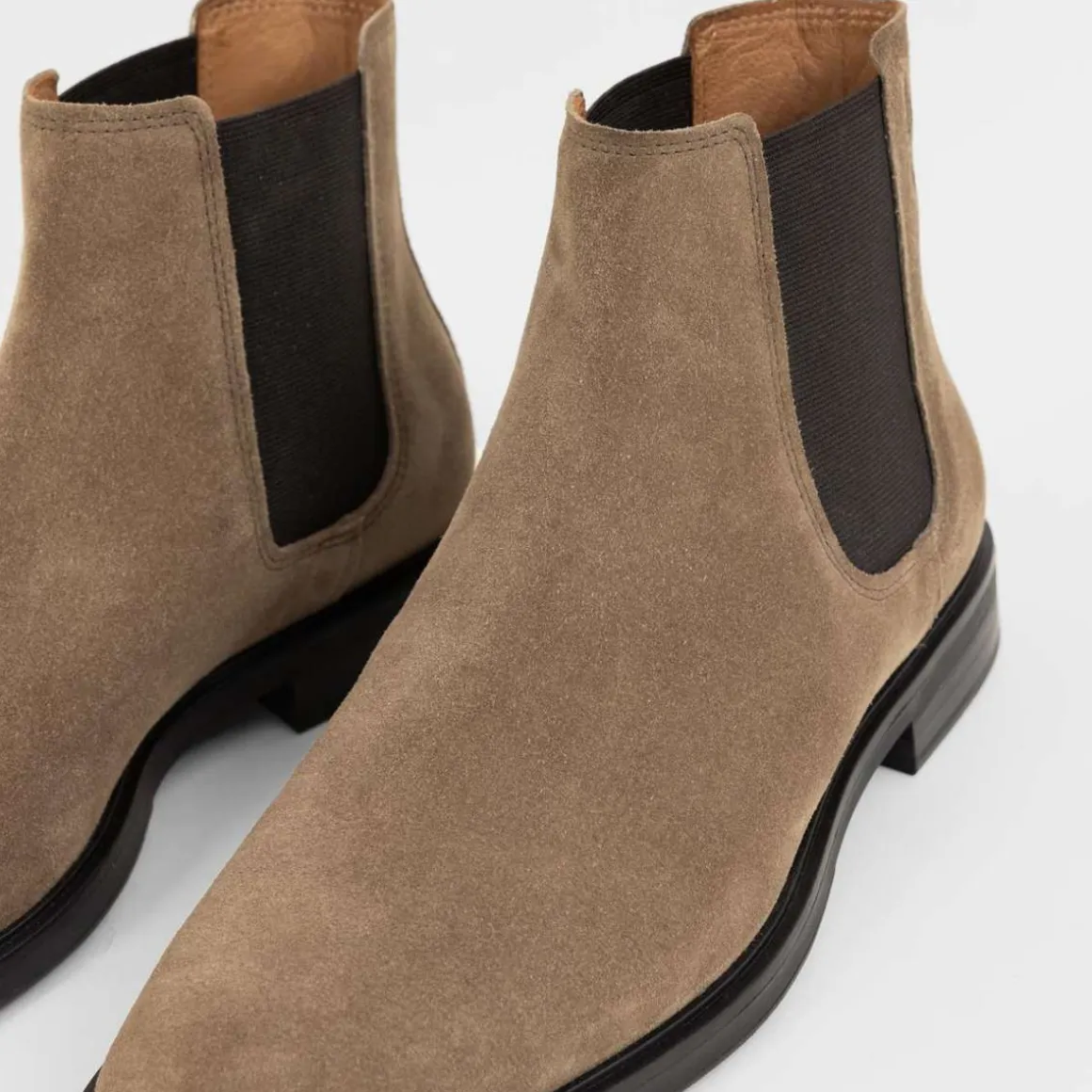 Andrew fra Vagabond er elegante Chelsea boots for hverdagsbruk. Modellen er laget i beige semsket skinn med rund tå, elastiske sidepaneler og innersåle i skinn. Den lagdelte hælen måles til 30 mm. Detaljer inkluderer draflik bak.