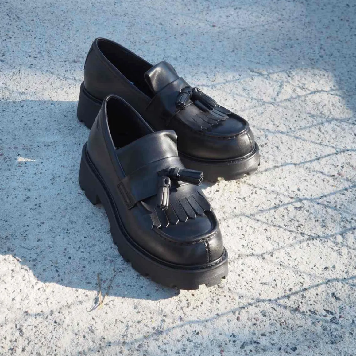 Denne Cosmo 2.0 loaferen fra Vagabond er full av karakter, og et chunky tillegg til skosamlingen. Den helt svarte overdelen er laget av glatt skinnsett på en 45 mm solid såle.