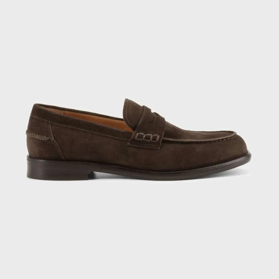 Vi omtaler vanligvis Steven fra Vagabond som den perfekte loaferen. Penny-designet er laget av brun semsket skinn. Yttersålen har en tynn gummilapp som gir godt grep.