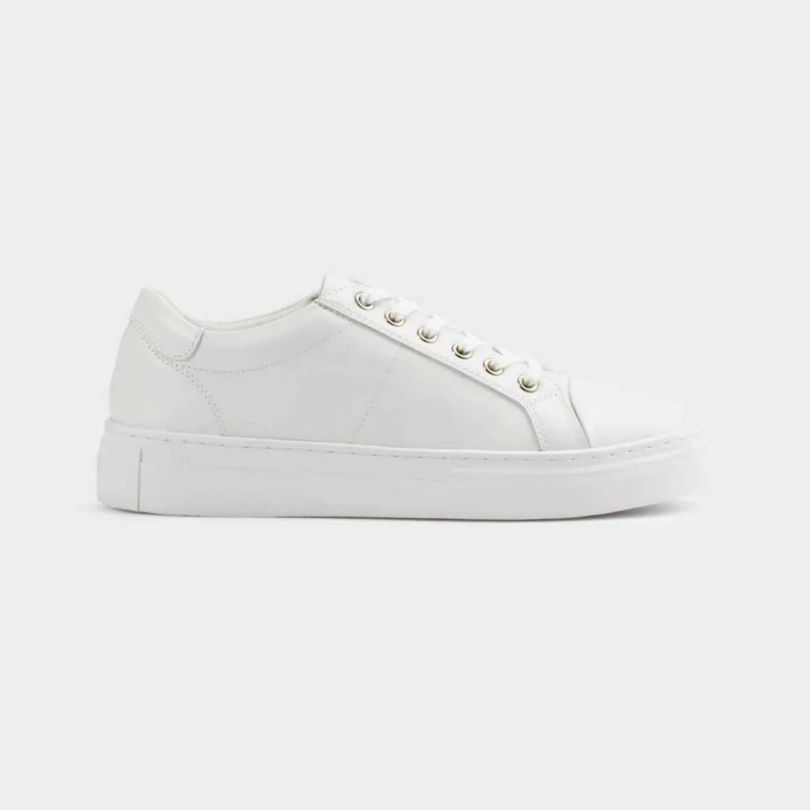 Zoe Platform sneakers fra Vagabond har et rent design med sofistikerte detaljer. Modellen er laget av hvitt skinn med avrundede tupper, snørelukking og polstrede krager. De forhøyede sålene måler 40 mm. Detaljer inkluderer gullfargede maljer.