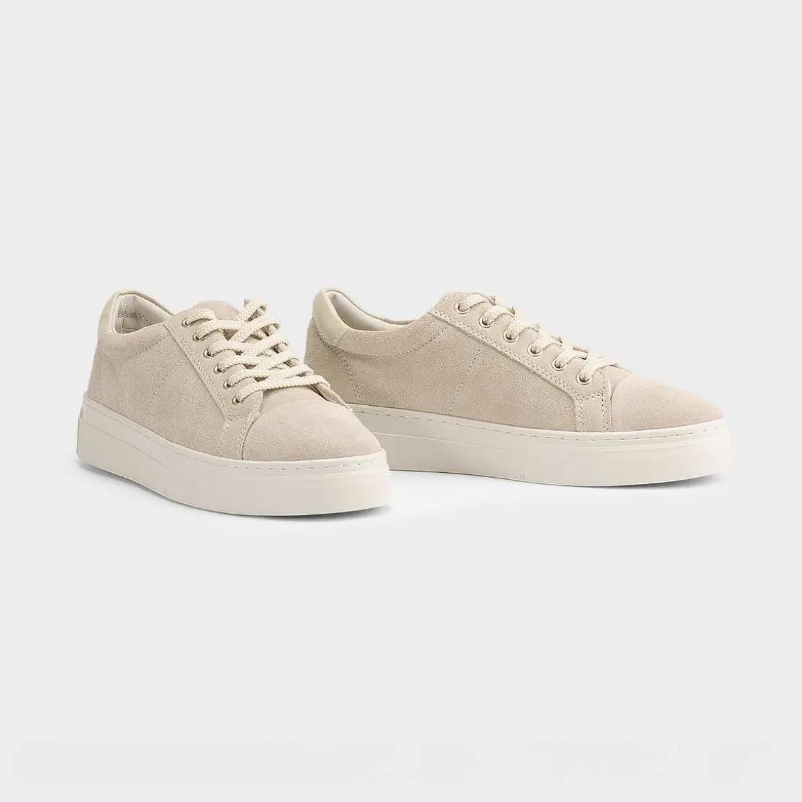 Zoe Platform fra Vagabond er chunky sneakers til hverdagsbruk. Modellen er laget i semsket beige skinn.