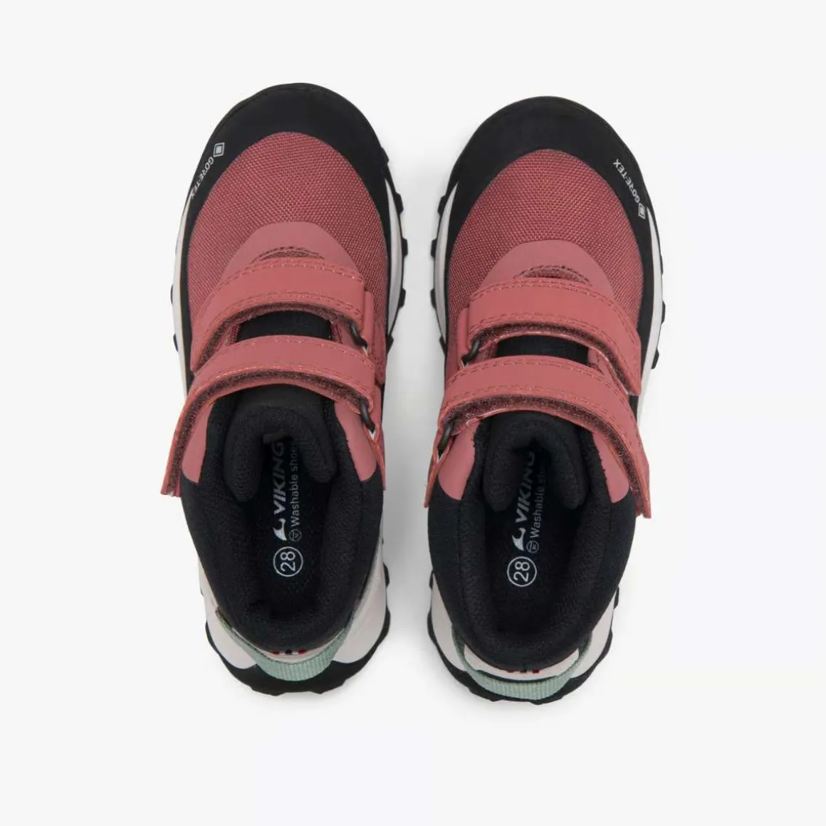 Vikings beste barnehagesko i klassen, som er fullpakket med førsteklasses funksjoner og resirkulerte materialer. Den vanntette PFC-frie GORE-TEX-membranen holder for eksempel føttene komfortable og tørre i vått vær, mens den støttende, forsterkede overdelen i et slitesterkt og slitesterkt teknisk tekstil er utstyrt med store refleksdetaljer for bedre synlighet i dårlig lys. Under holder en fotstropp lekedressen på plass, mens gummioverdelen med Vikings Ultimate Grip Concept gir et uslåelig grep uansett underlag.