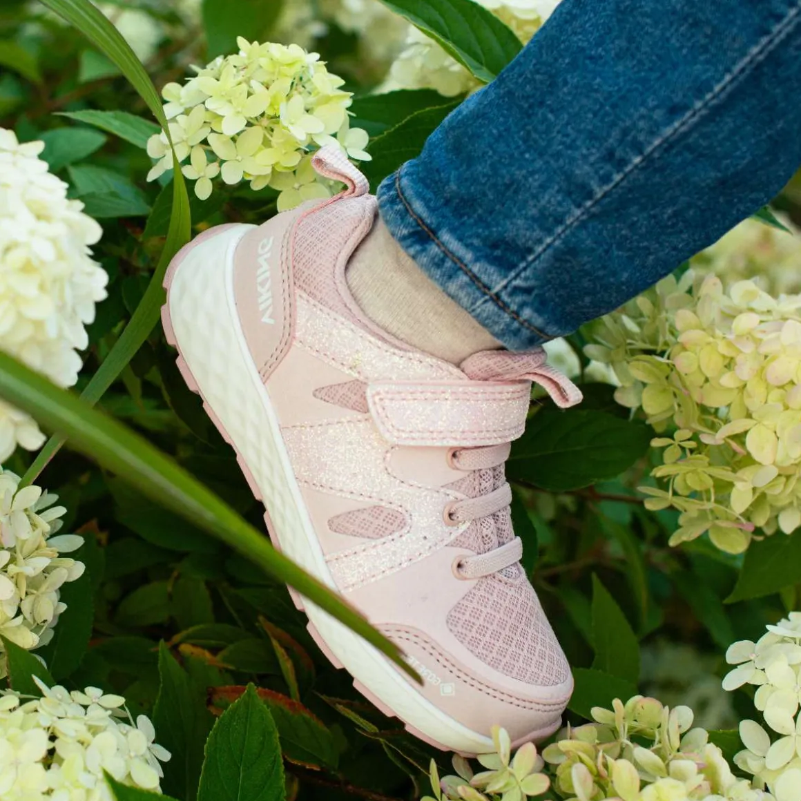 Glitter er fortsatt populært i barnehagen, og barna kommer til å elske glitrende Fun Glitter GTX. Den glitrende effekten synes best når man løper og hopper. Yttersåle i naturgummi gir utmerket grep og skoens vekt er gjort så lav som mulig ved hjelp av en lett og syntetisk overdel og dempende EVA mellomsåle. Tørre føtter er glade føtter, derfor har vi lagt til en vanntett GORE-TEX-membran slik at litt fuktighet ikke fører til at all moro må avsluttes for tidlig.